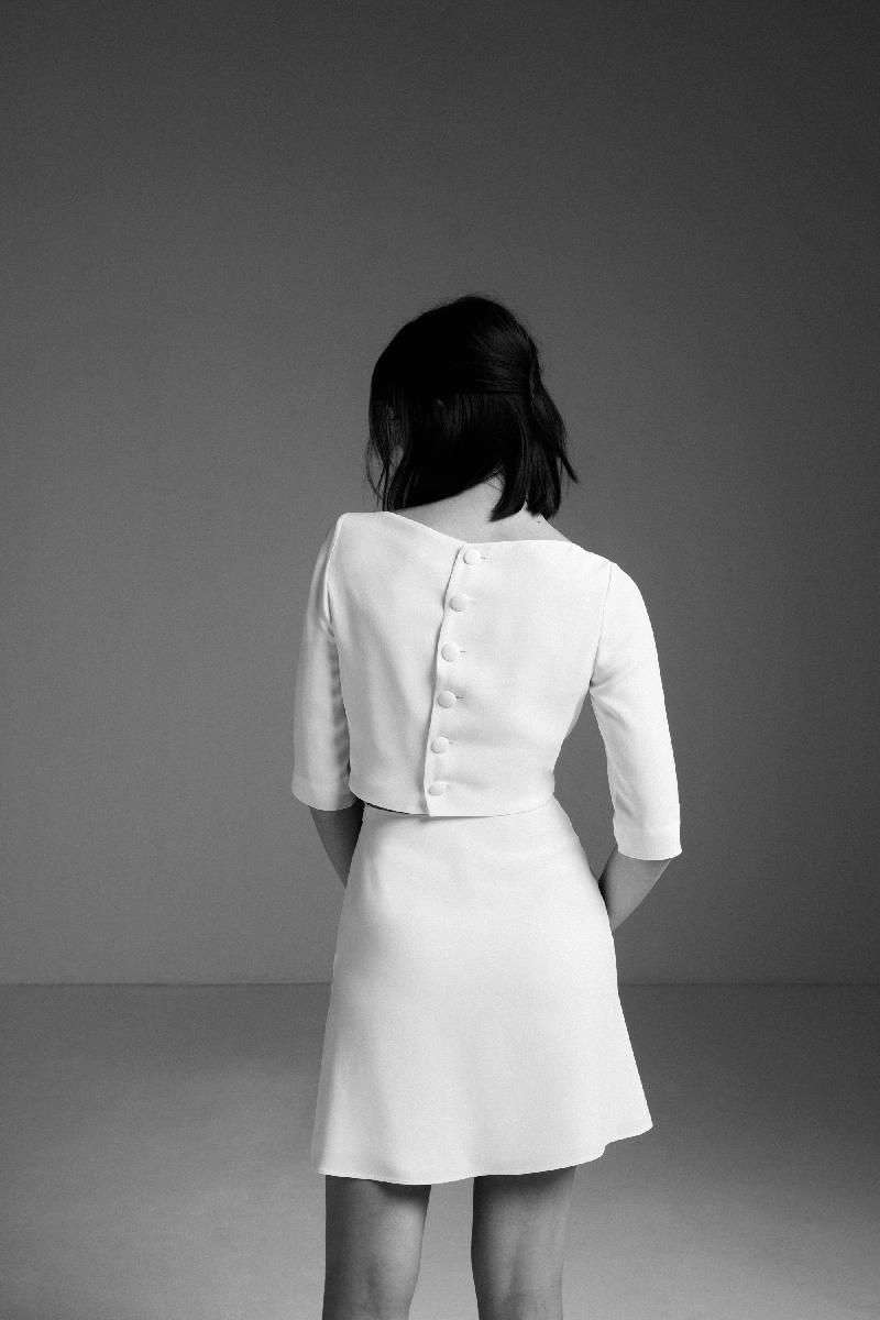 Robe courte simple en crêpe pour mariage civil.